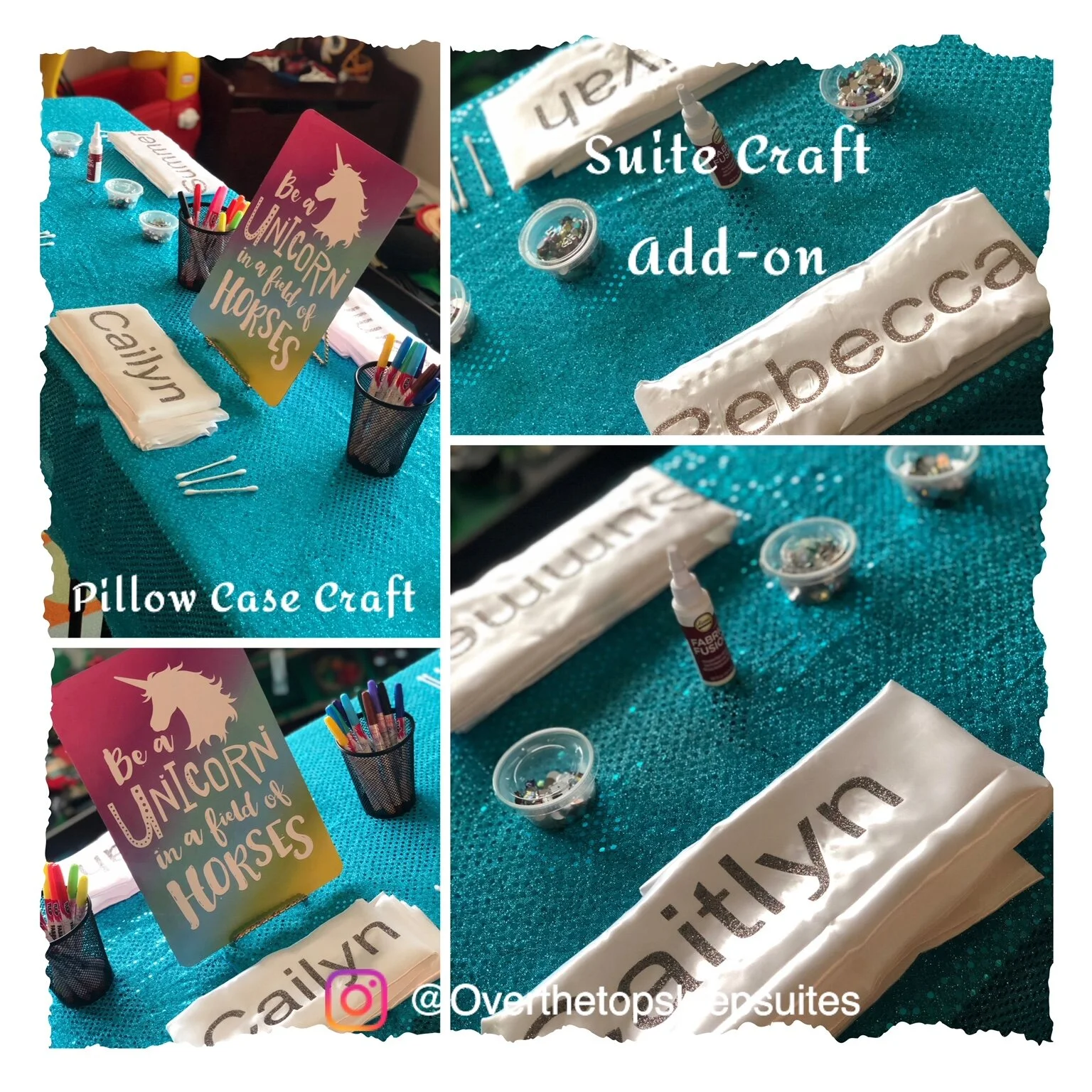 This add-on is for up to 5 guest and includes the use of our table(s) and chairs. This add-on may be added to any of our sleep suites themes or color scheme. ***Our Spajama Glam Spa can NOT be booked alone must be booked with a sleep suite package.***